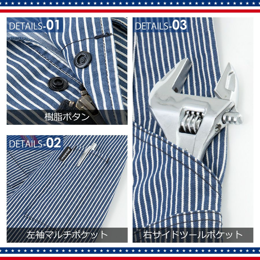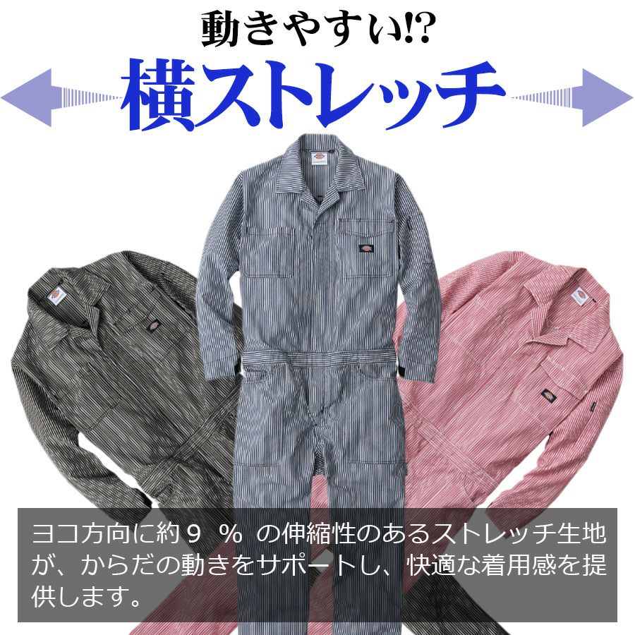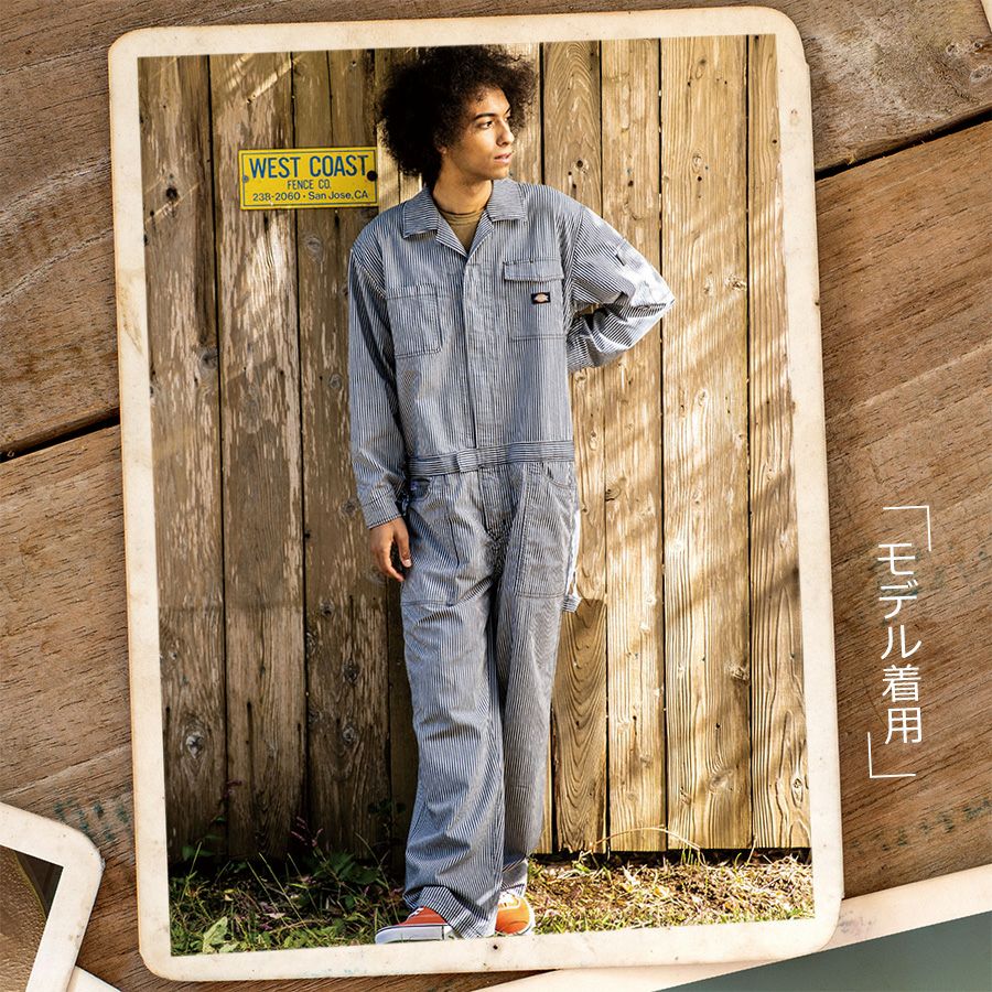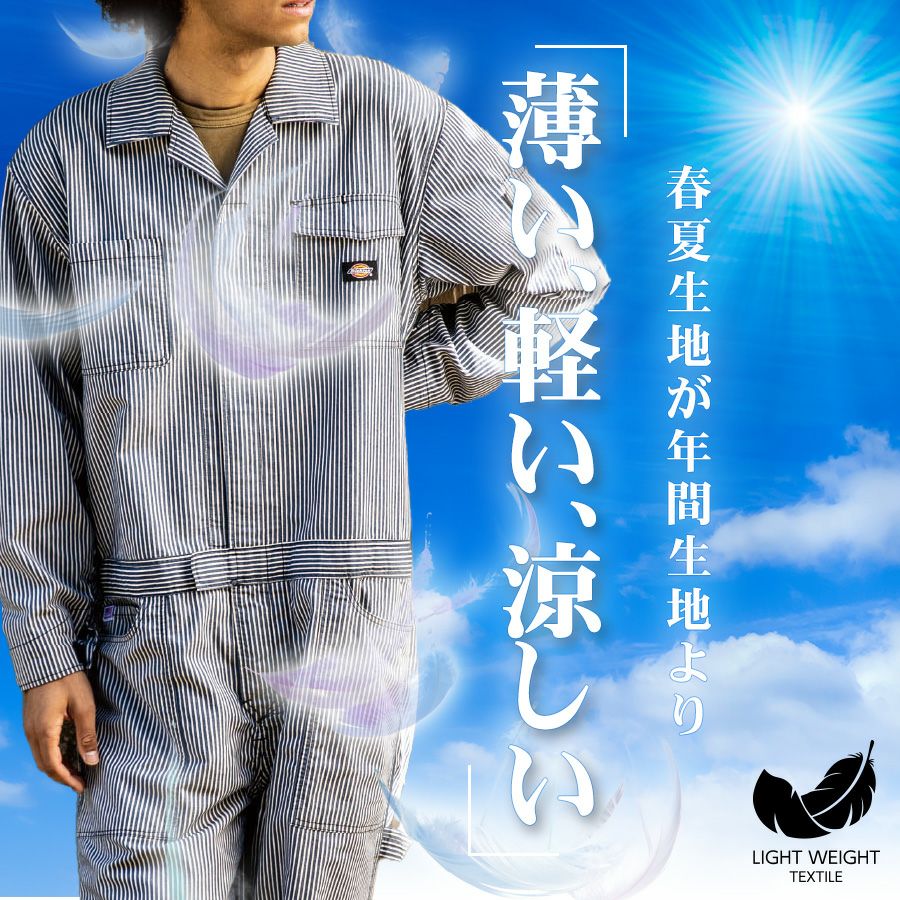 ディッキーズ ライトストレッチヒッコリーツナギ D-7106 長袖 メンズ レディース 作業着 作業服 接触冷感 軽量 UVカット ストレッチ 夏用 おしゃれ アメカジ Dickies