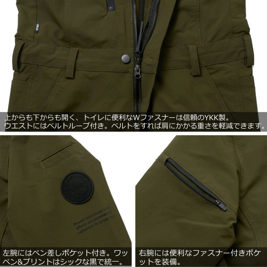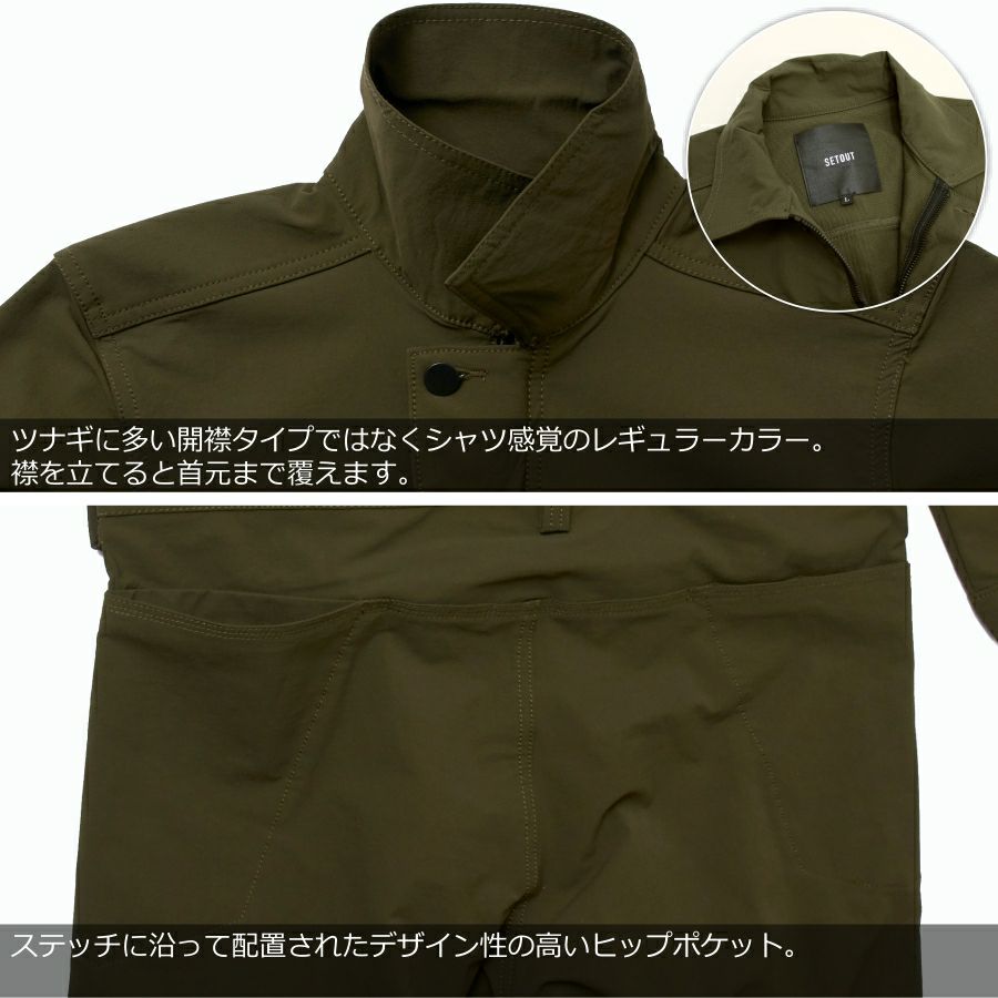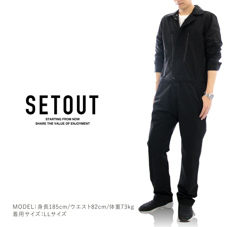 「SETOUT(セトアウト)」ストレッチカバーオール/SO20A06/ストレッチ スリム ツナギ オシャレ アウトドア 作業服 作業着
