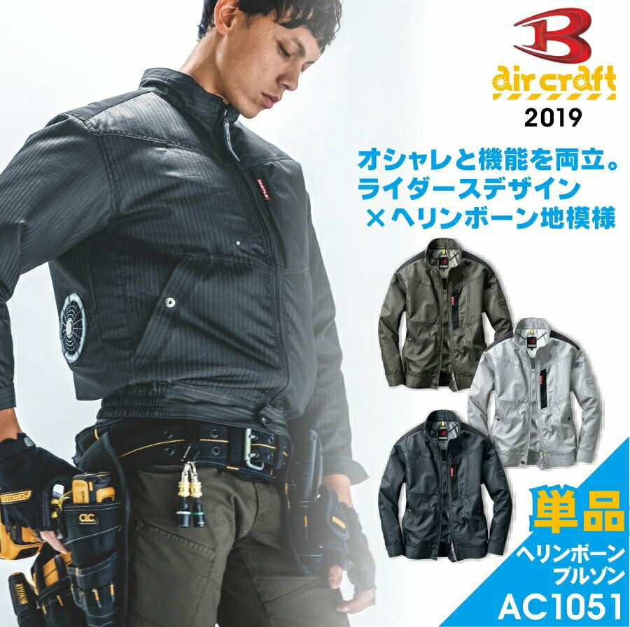 「BURTLE(バートル)」エアークラフトヘリンボーンブルゾン/AC1051/【2019 EXS 夏物 作業服】* メンズ ブルゾン 作業着 空調作業服 夏物 猛暑 ファン*