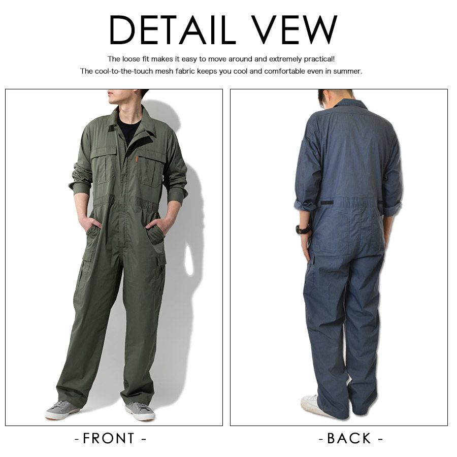 プロノ クールストレッチ長袖カーゴツナギ PR-2506 接触冷感 通気 メッシュ 夏用 薄生地 オーバーオール メンズ つなぎ おしゃれ 動きやすい 作業服