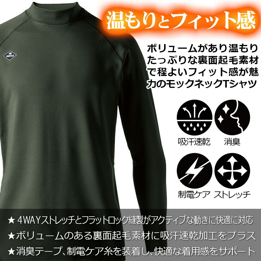 バートル ホットフィットTシャツ 4103 防寒 トップス 裏起毛 モックネック 長袖 ロンT 秋冬 作業服 作業着 インナー BURTLE