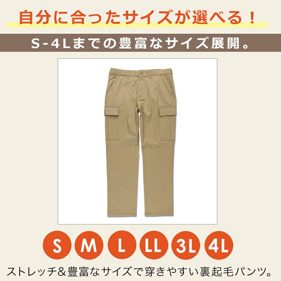 【4L】プロノ 裏起毛ストレッチカーゴパンツ PR-2433 メンズ 秋冬 暖 パンツ 防寒 冬 作業服 作業着 作業ズボン prono