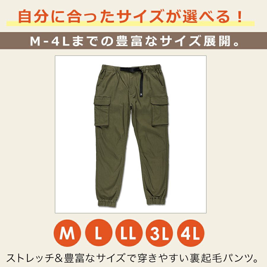 【4L】ハミューレ 裏起毛ストレッチジョガーパンツ HMU-2463 メンズ 秋冬 暖 パンツ カーゴパンツ 動きやすい 防寒 冬 作業服 作業着 作業ズボン プロノ HAMURE