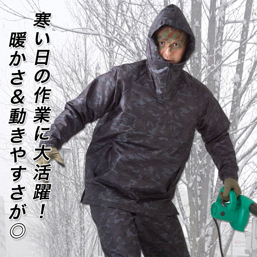 【4L】プロノ リップストップ迷彩キルトヤッケ PR-2430 カモフラ 防寒 ヤッケ アノラック ウインドブレーカー ウォームアップ 作業着 作業服 メンズ アウター ジャンパー Prono