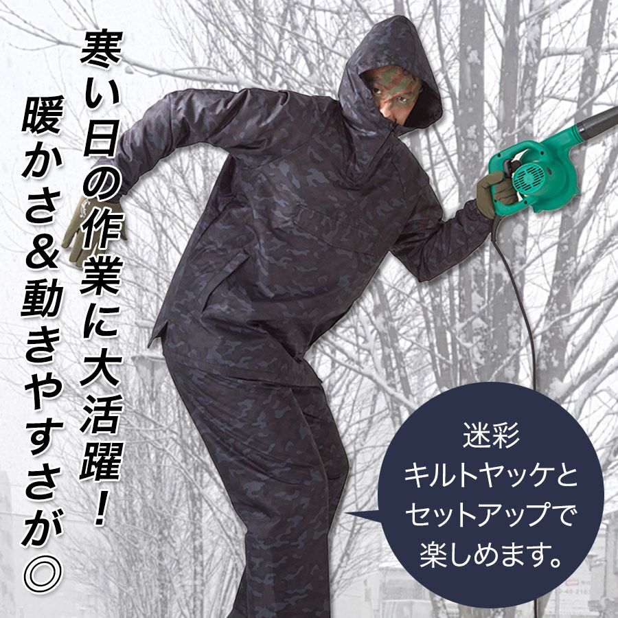 プロノ リップストップ迷彩キルトパンツ PR-2431 カモフラ 防寒 ヤッケ ウインドブレーカー ウォームアップ 作業着 作業服 作業ズボン オーバーパンツ メンズ Prono
