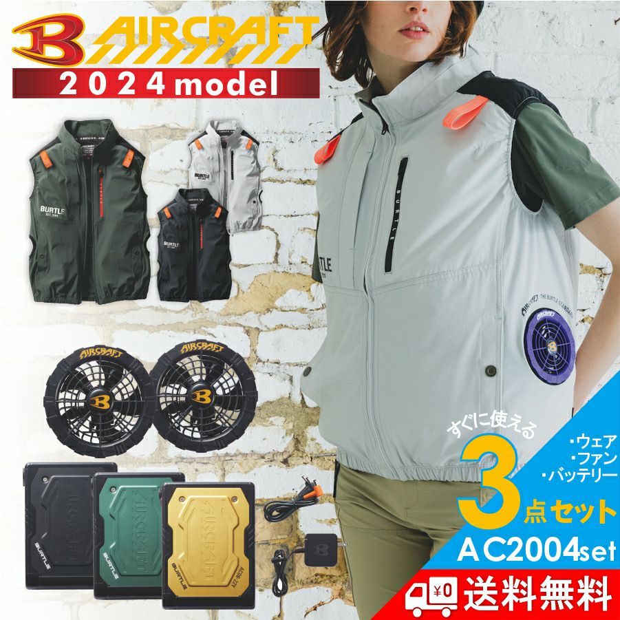 【2024年モデル】バートル エアークラフト コーデュラナイロンベストセット(バッテリー・ファン・作業服の3点組) AC2004set メンズ 空調 夏物 作業着 プロノ BURTLE