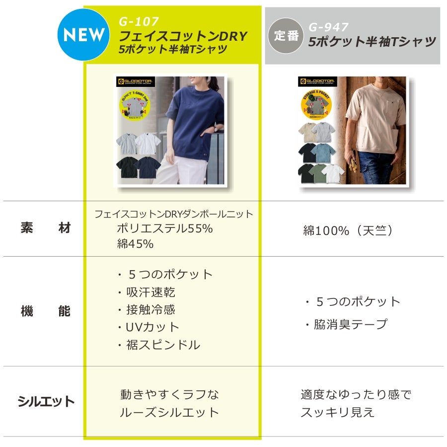 他の画像を見る グラディエーター フェイスコットンDRY5ポケット半袖Tシャツ G-107 メンズ カットソー トップス 収納 吸汗速乾 接触冷感 UVカット GLADIATOR ¥ 2,739 税込 カートに入れる お気に入りに登録する