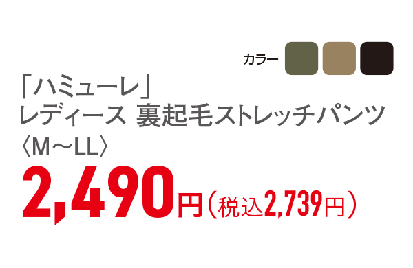 レディース 裏起毛ストレッチパンツ