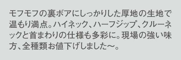 裏ボア長袖ハイネックシャツ/裏ボア長袖ハーフジップシャツ/裏ボア長袖クルーネックシャツ