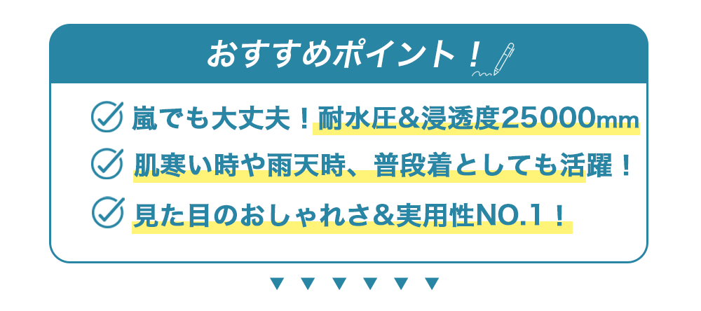 肌寒い時や雨天時、普段着としても超優秀!
