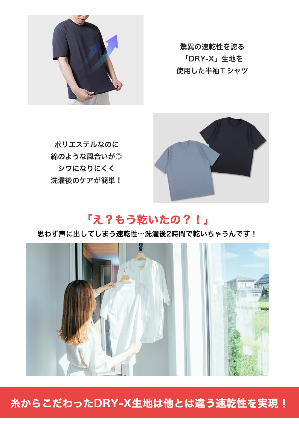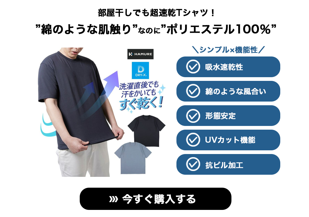 プロノのTシャツはお洗濯後、2時間で乾きます!