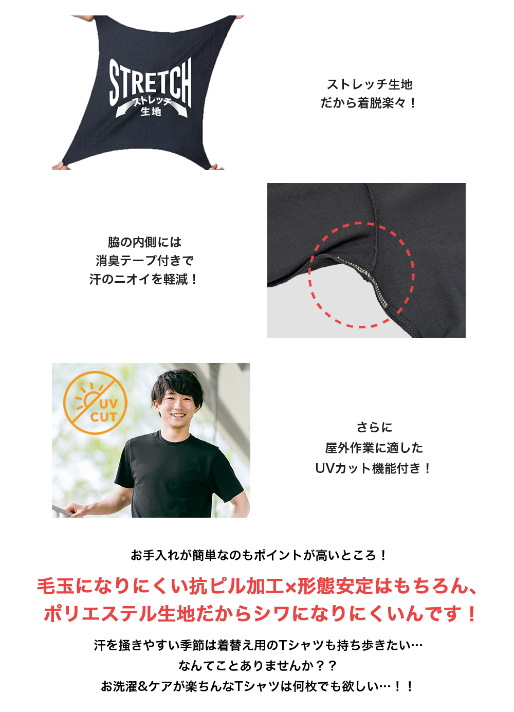 超速乾Tシャツだから、汗をかいてもスグに乾くのがポイント。