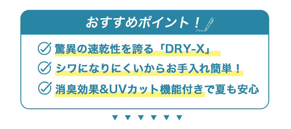さらにシワになりにくいからアイロンいらずなんですよ!